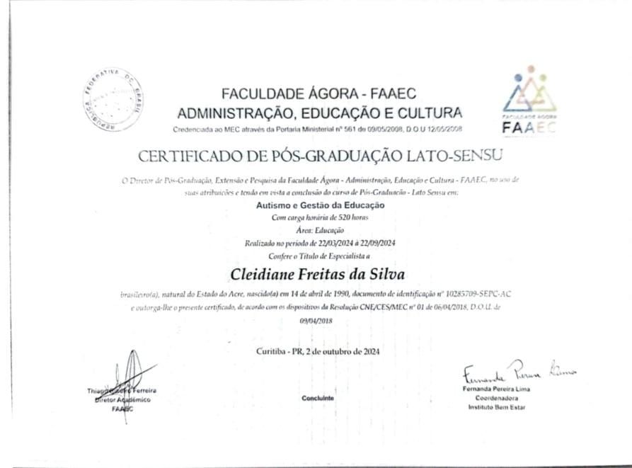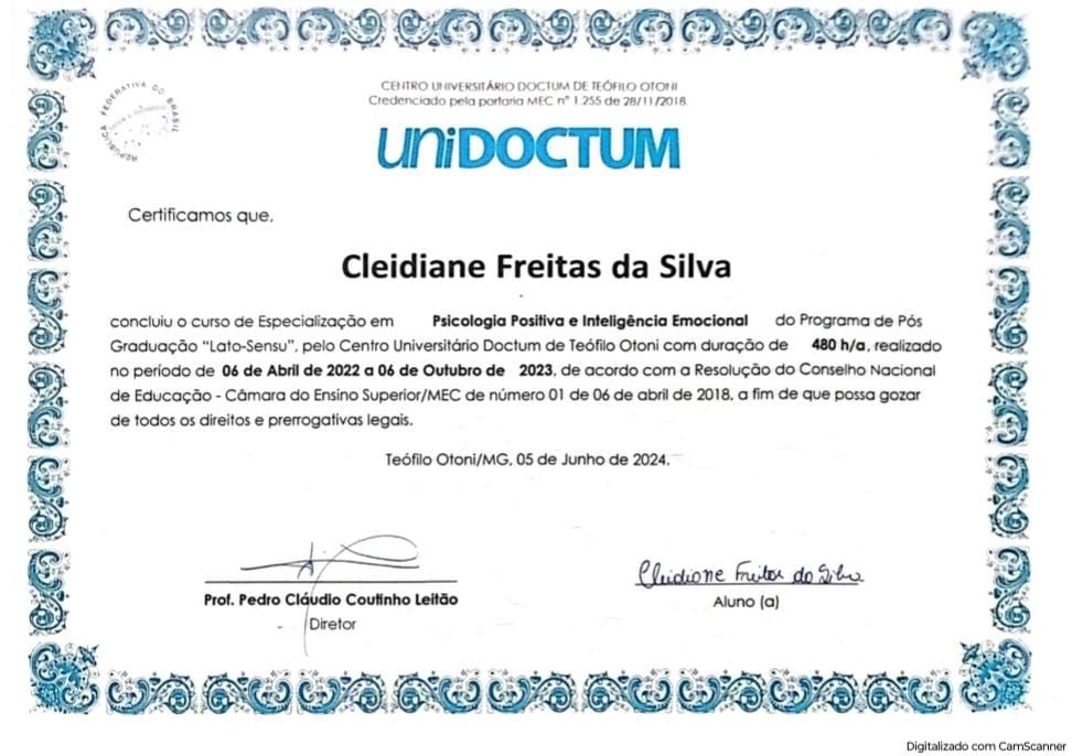Sou Especialista em Psicologia Positiva e Inteligencia Emocional, também tenho especialização na área de Autismo e Gestão da Educação.
